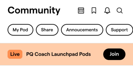 - a calendar icon in the Community header. Tapping it shows a list of all available coach events.