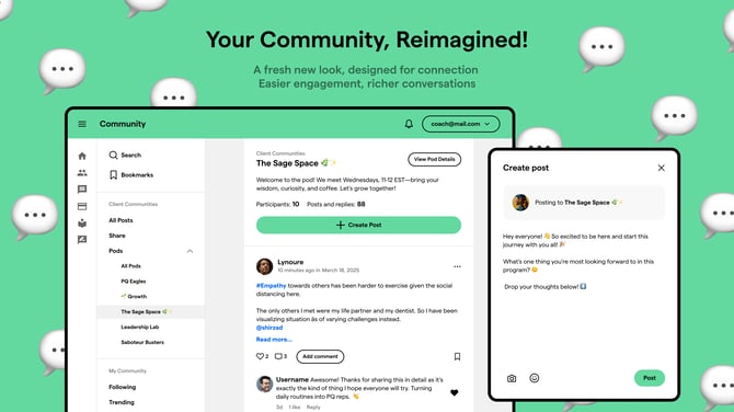 We’ve refreshed the Coach Dashboard Community experience to help you connect, navigate, and support your clients more easily.